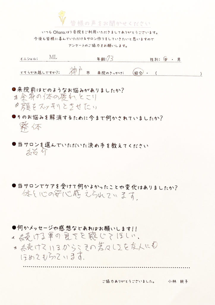 ●当サロンでケアを受けて何かよかったことや変化はありましたか?